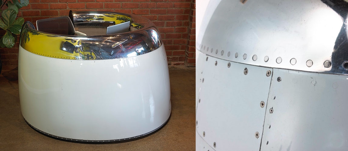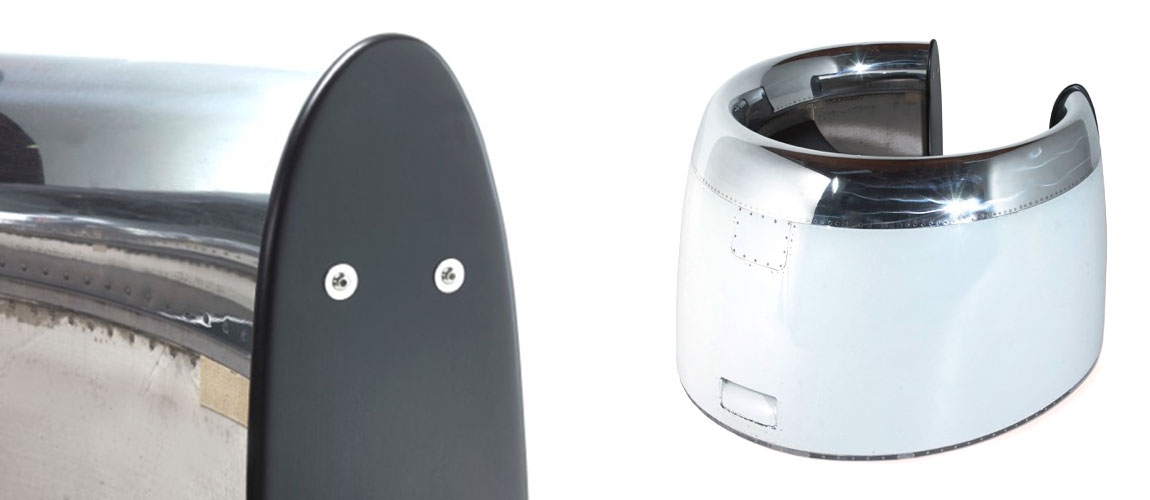 In keeping with the spirit of the Super 80, our Mad Dog Cowling Desk remains true to the original. We’ve kept the original rivets, paint and every detail as it was designed. Each is color sanded and lightly polished to accent the natural patina and texture of the original airplane skin. The result is not only an incredible desk but also truly a piece of aviation history.