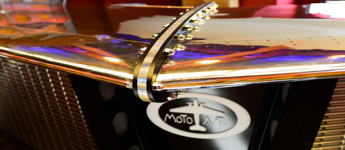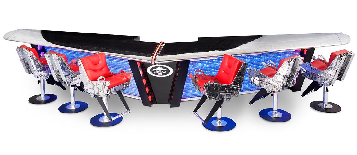 Book a flight for straight-up fun and fly high on the wings of MotoArt’s new super stylish, extremely distinct, undeniably cool G2 Wing Bar. Fashioned from the tail fins of the prestigious Gulfstream 2, this handcrafted custom-made bar is literally a shining example of how amazing and hip airplane furniture can be.