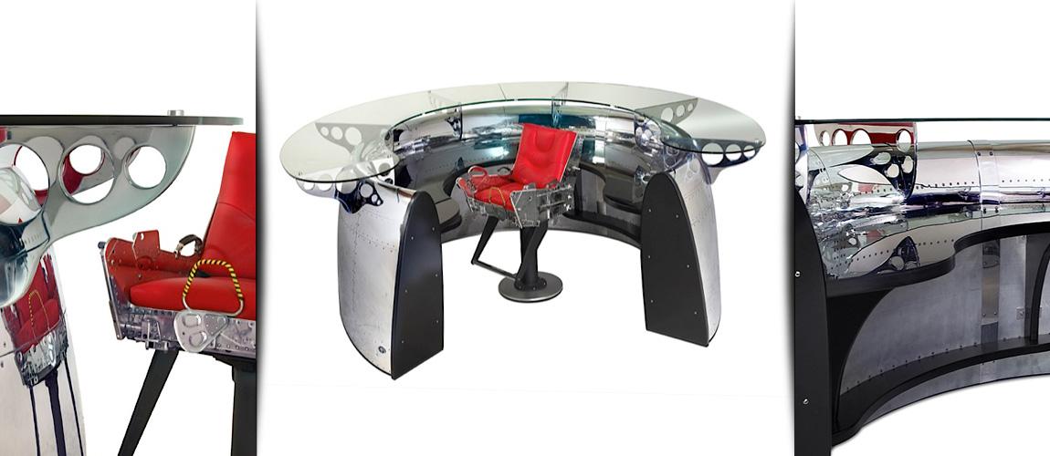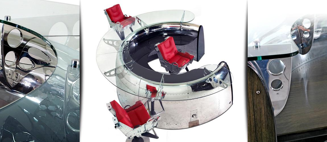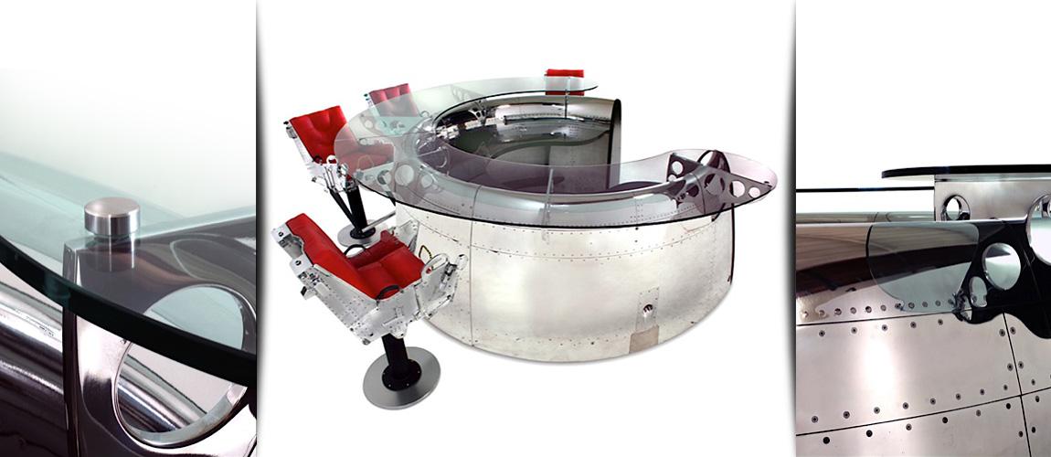 There is something so intriguing about a sizable aircraft component, like a 747 engine cowling that once housed the titanic power of immense amounts of horsepower, transformed into a piece of custom furniture.