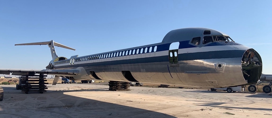 It all begins with the retired American Airlines MD-80 engine nacelle cowling. They are carefully hand-cut, then loaded onto a truck and their journey continues. They are driven from the airplane boneyard in Roswell, New Mexico to MotoArt Studios in Torrance, California.