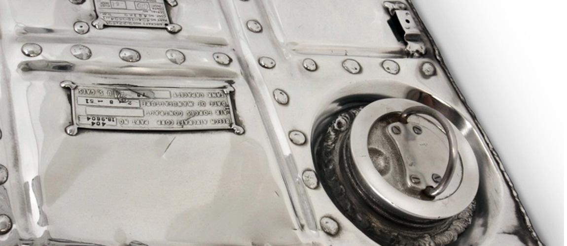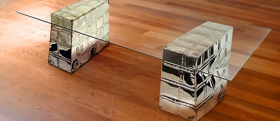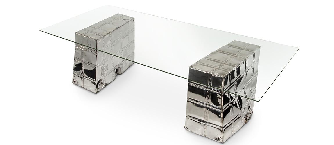 The C-45 Fuel Tank Table is cause for a double take. These all aluminum 1950’s aircraft 78 gallon fuel tanks, from a retired military workhorse, have been transformed from utilitarian containers to a chic minimalist furniture design suitable for any number of spaces.