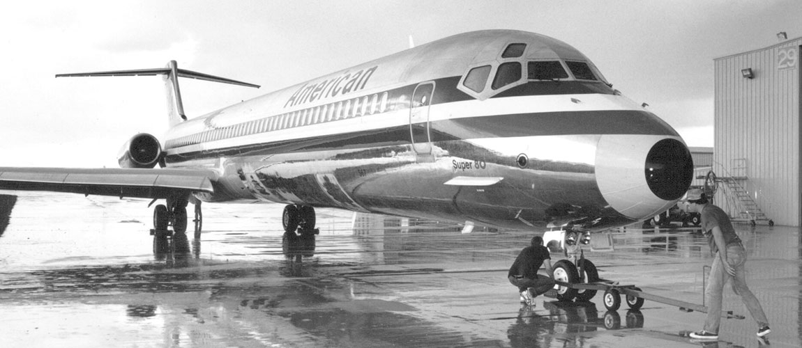 American Airlines was the first major U.S. carrier to order the MD-80, receiving twenty 142-seat planes in October 1982 and replacing its fleet of Boeing 727-100s. Calling it the Super 80, they inaugurated a new era of service at six airports on May 15, 1983. By 1984, the fuel-efficient planes had proven a cost-efficient replacement for the oldest and least efficient aircraft in their fleet. They then made the largest airplane order in commercial aviation history with a purchase of 67 more, with an option to purchase 100 additional twin jets. The Super 80 was a perfect fit for American Airlines’ growth plan of sustained profitability.