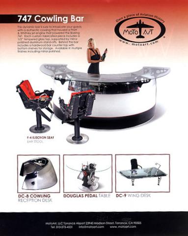 Featured Product: PW-747 Cowling BarDouglas DC-8 Cowling Reception DeskDouglas Pedal TableDC-9 Airplane Desk